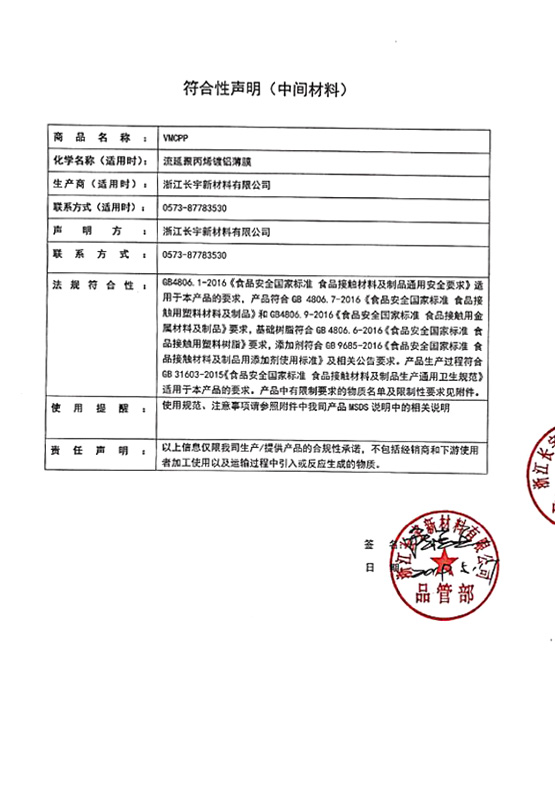 Zhejiang Changyu New Materials Co., Ltd., im April 2000 gegründet und ist ein professioneller Hersteller von Metallisierter Film mit hoher Barriere, Coated Film, Alox Film in China. Wir haben eine stabile Zusammenarbeit mit berühmten Unternehmen wie Amcor, Bemis, Zijiang.
